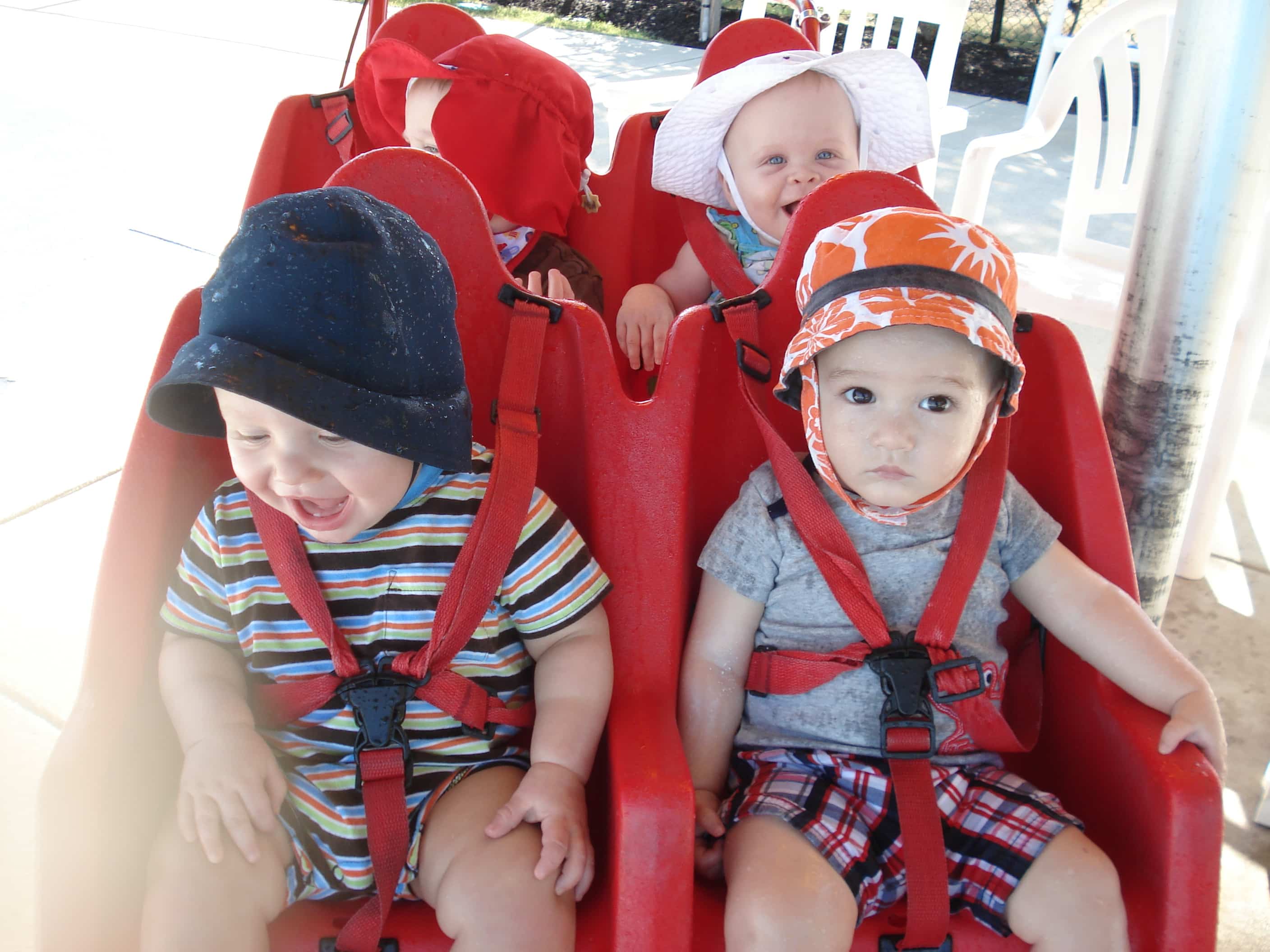 As infants in the JCC preschool: James at left, Alex at right, Katie is behind Alex