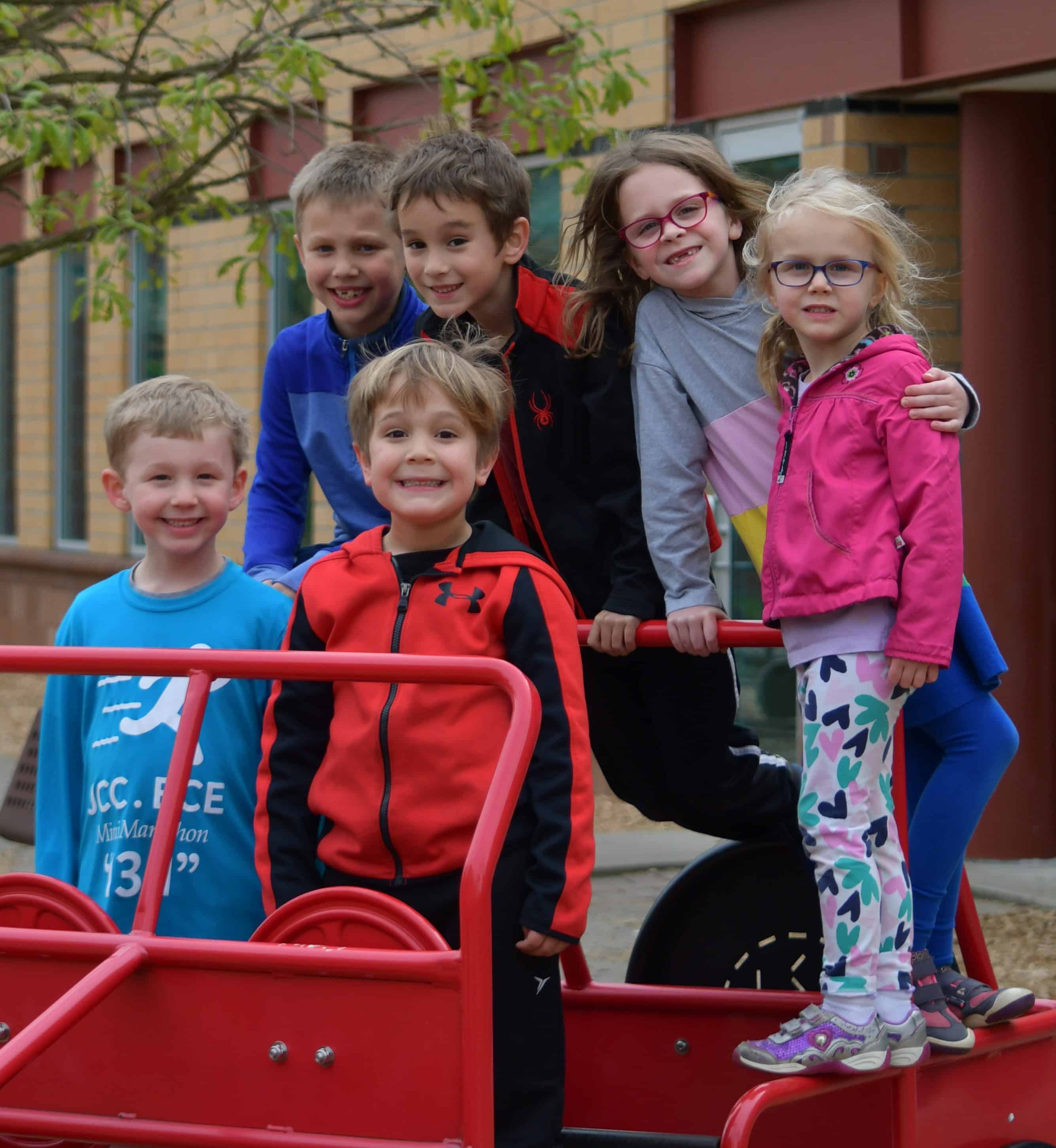 With siblings who are now in ECE. Top row, L-R: James W., Alex J., Katie W., Anna W. Bottom row, L-R: Evan W., Eli J.